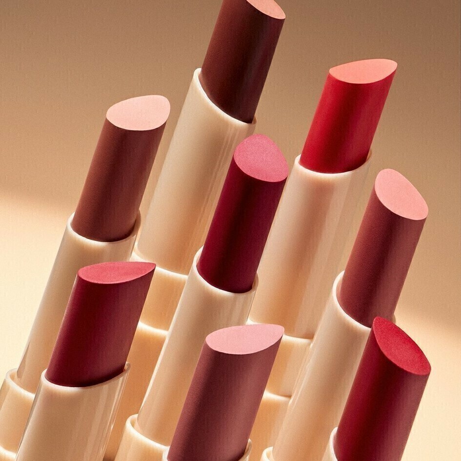 O batom possui um acabamento aveludado, com textura cremosa e matte, que deixa os lábios macios e com um visual sofisticado.