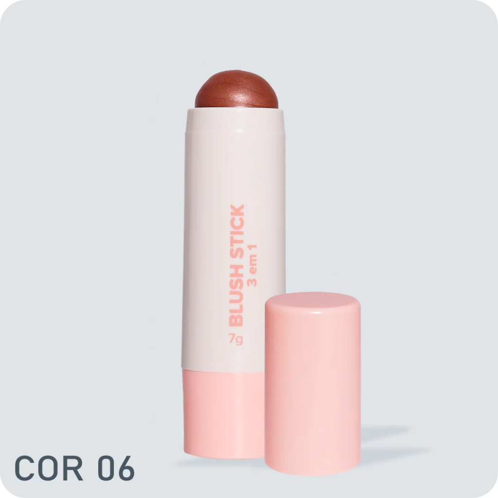Super pigmentado, o Blush Stick 3 em 1 possui uma textura cremosa e confortável e proporciona um efeito de pele saudável e natural com alta durabilidade e sem manchar. Prático para aplicar, o bastão também é multiuso, pode ser usado nos olhos, boca ou bochechas. O Blush Stick 3 em 1 está disponível em diferentes cores.