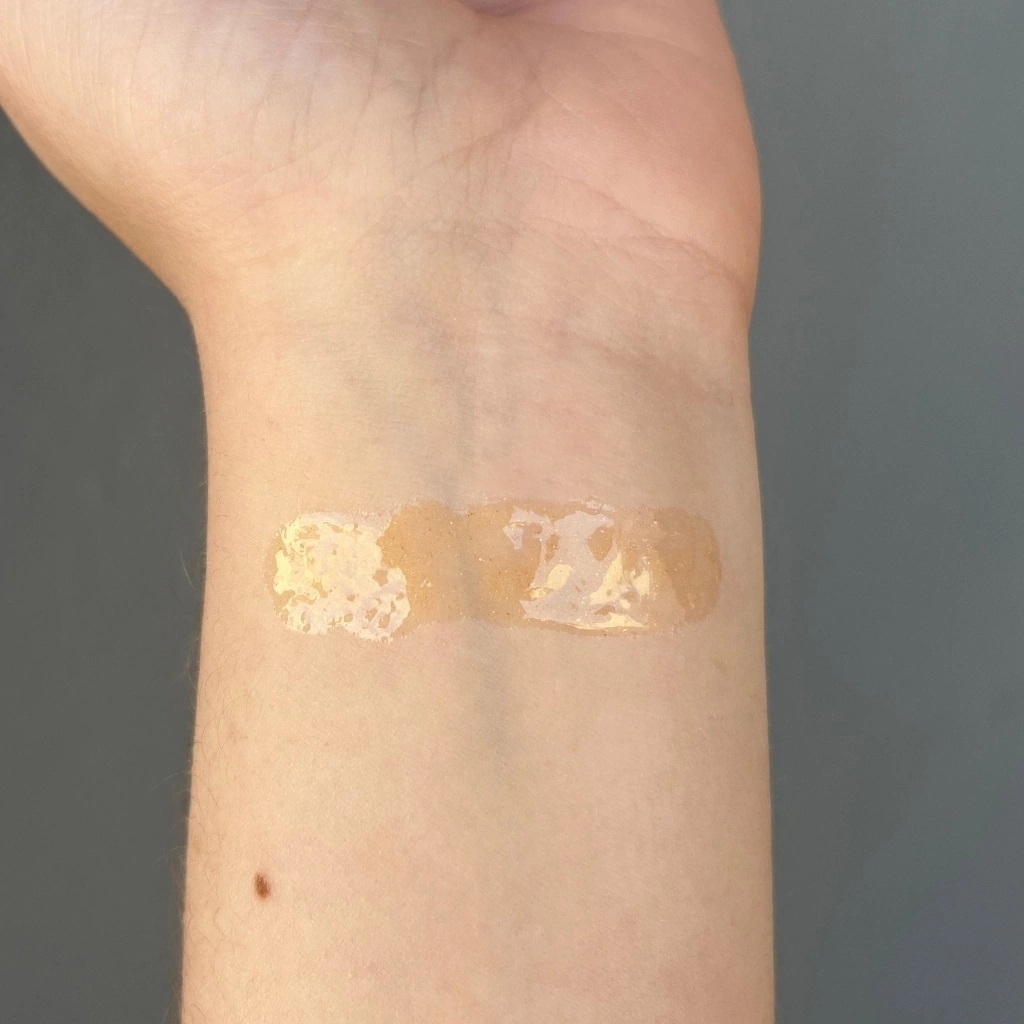 Sua fórmula inovadora é enriquecida com óleos de semente de uva, jojoba e rosa mosqueta, ativos reconhecidos por seu alto poder nutritivo e regenerador. Com uma textura leve e confortável, ele não é pegajoso como os glosses tradicionais, e ainda conta com partículas douradas que iluminam suavemente os lábios, deixando um efeito glow sofisticado.