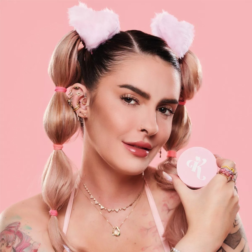 Este é o Pink Powder, o meu pó solto com efeito translúcido… e cor de rosa! Sua textura suave se adapta a todos os tons de pele. Ele contém microesferas que auxiliam na absorção da oleosidade da pele, proporcionando maior durabilidade da maquiagem, deixando um efeito matte, disfarçando as linhas finas e imperfeições, e sem adicionar cor à maquiagem.